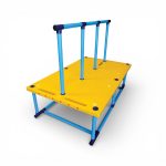 This is an extraordinary teaching tool. Not only does this platform look very elegant with its nice and soothing palette for pool water, but its surface is perfectly sturdy and weighs just enough to provide great reliability. So it goes for the supporting bars, which are vigorously strong but very light. It also comes with side railings, which are not necessary as the platform is large enough to guarantee safety for your little swimmers. And, without side railings, you can use the same platform for two different classes in the same lane.