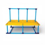 This is an extraordinary teaching tool. Not only does this platform look very elegant with its nice and soothing palette for pool water, but its surface is perfectly sturdy and weighs just enough to provide great reliability. So it goes for the supporting bars, which are vigorously strong but very light. It also comes with side railings, which are not necessary as the platform is large enough to guarantee safety for your little swimmers. And, without side railings, you can use the same platform for two different classes in the same lane.