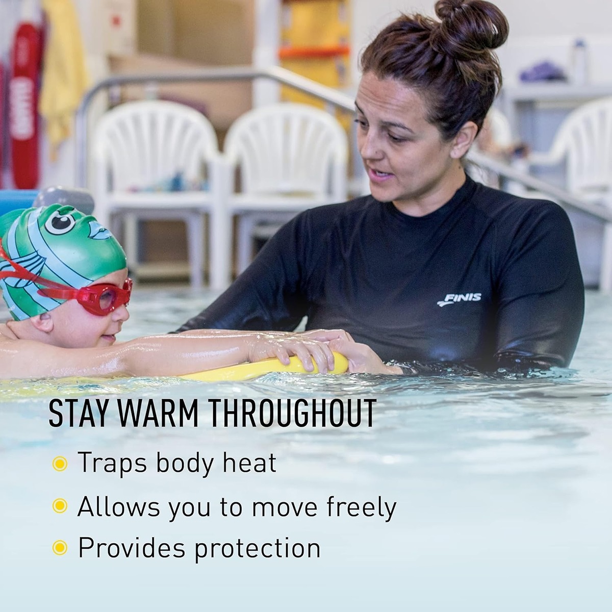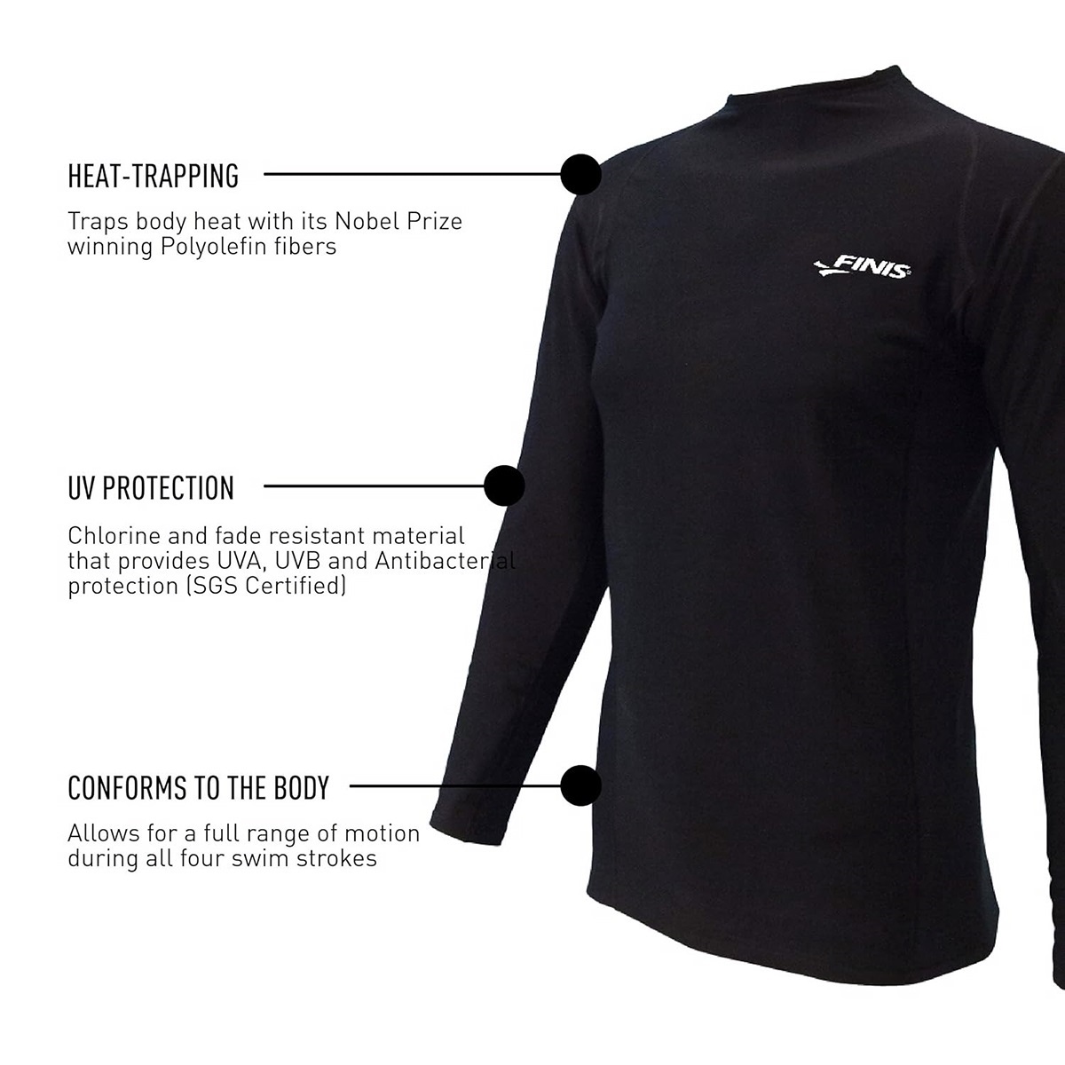 – Áo bơi giữ ấm FINIS tạo cảm giác ấm áp cho người bơi bằng cách giữ nhiệt cơ thể bằng vải BiPoly độc đáo của nó. Áo bơi giữ ấm FINIS được làm từ chất liệu bền mạnh mẽ nhưng vẫn nhẹ, ôm sát phần trên của người bơi mà không hạn chế phạm vi chuyển động. Các sợi Polyolefin đoạt giải Nobel cung cấp sự bảo vệ của UVA, UVB chống clo, chống phai màu vải và kháng khuẩn (Được chứng nhận bởi SGS) (SGS là Cty kiểm định và chứng nhận hàng đầu thế giới – biểu tượng toàn cầu cho chất lượng và sự chính trực)